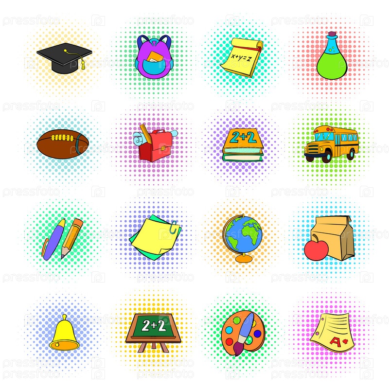 Набор школьных икон, стиль поп-арта