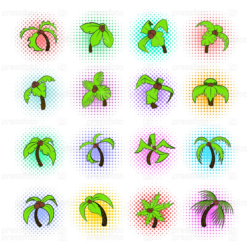 Набор икон пальмовых деревьев, в стиле поп-арт