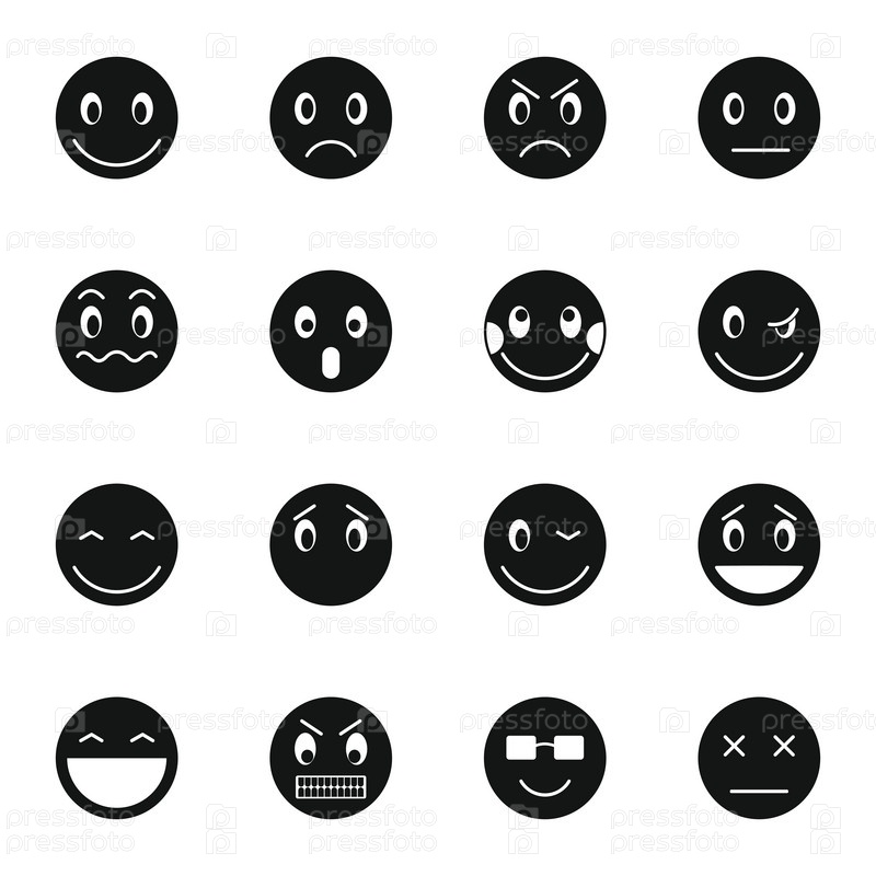 Emoticon icons set, простой стиль