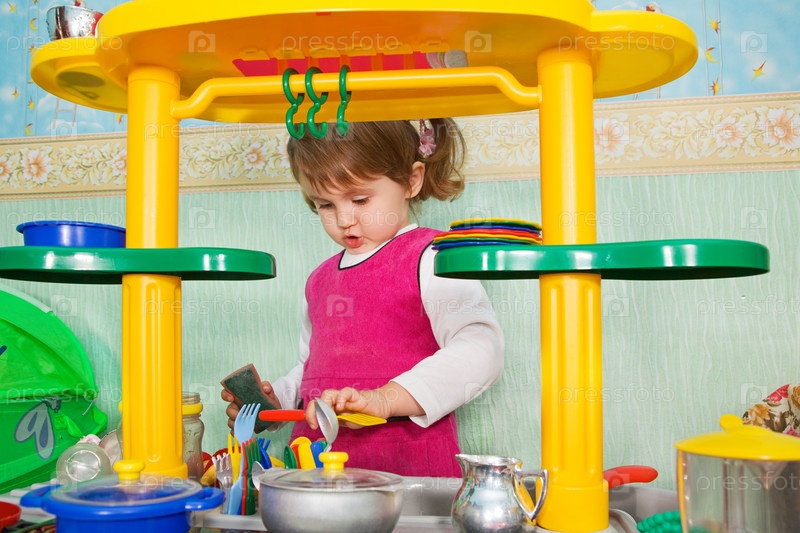 Девочка моет посуду