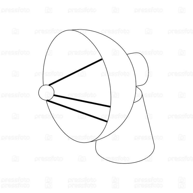 Радарная икона антенны спутниковой тарелки в изометрическом 3D-стиле на белом фоне