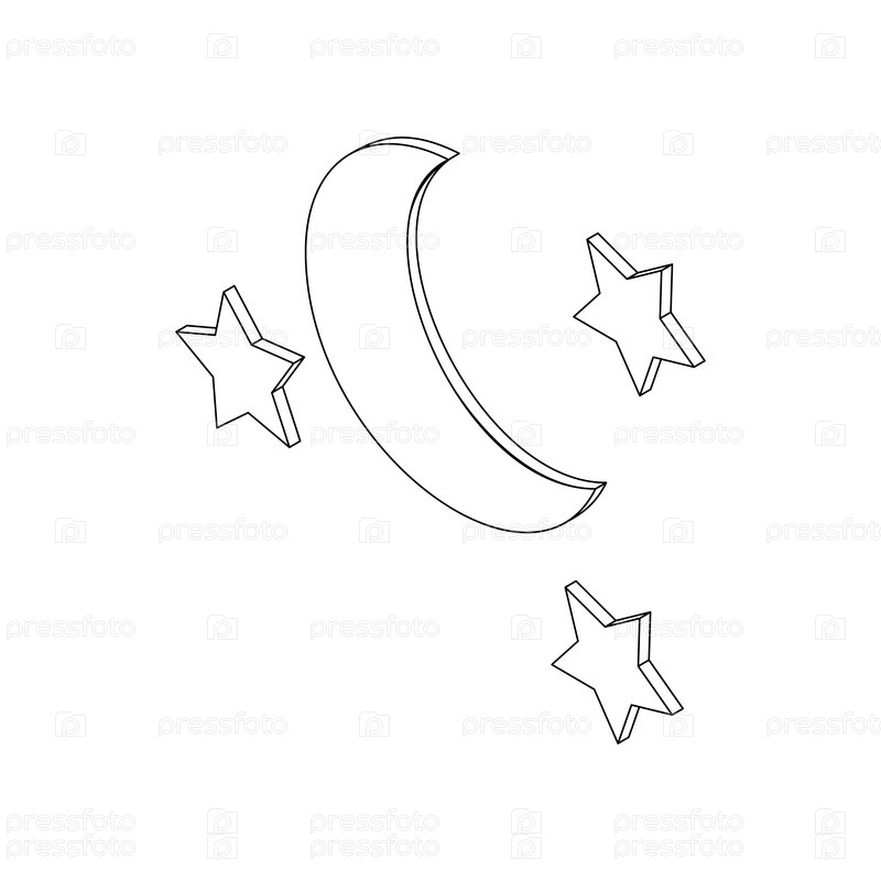 Икона Луны и звезд в изометрическом 3D-стиле на белом фоне
