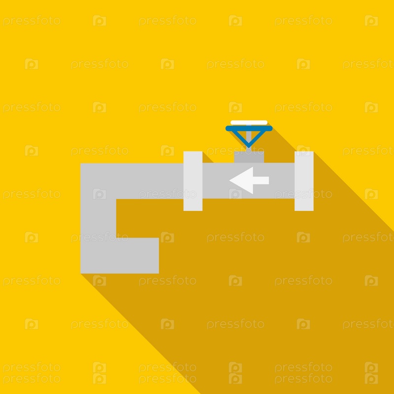Стальной трубопровод с красным знаком клапана в плоском стиле на желтом фоне