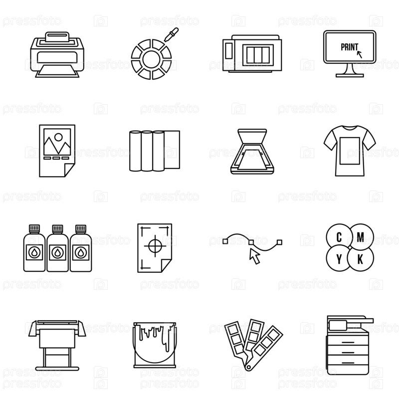 Набор икон печати, стиль тонкой линии
