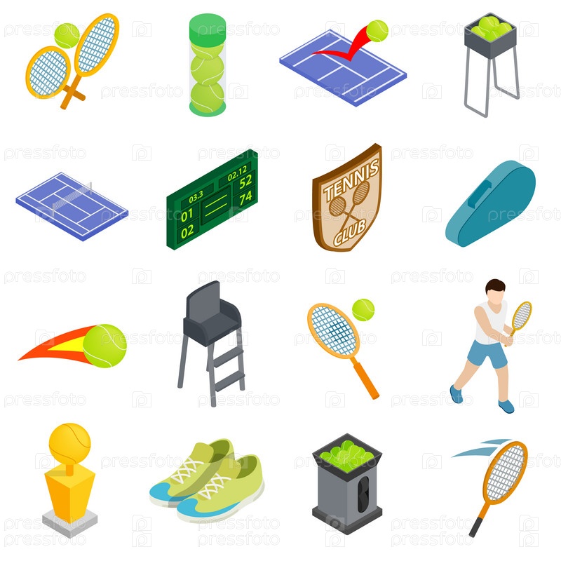 Набор икон тенниса, изометрический 3D-стиль