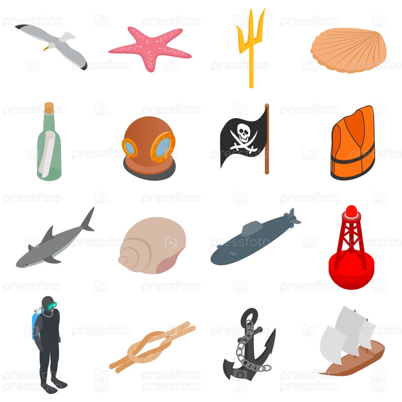 Набор морских икон, изометрический 3D-стиль