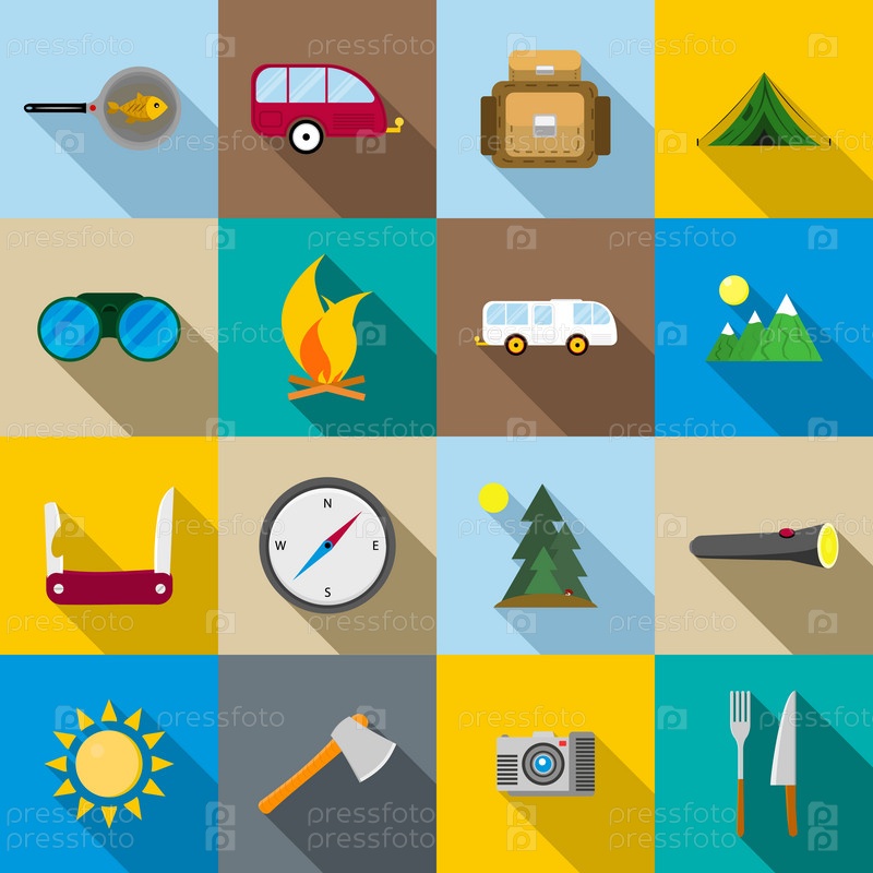 Набор икон походов и кемпинга