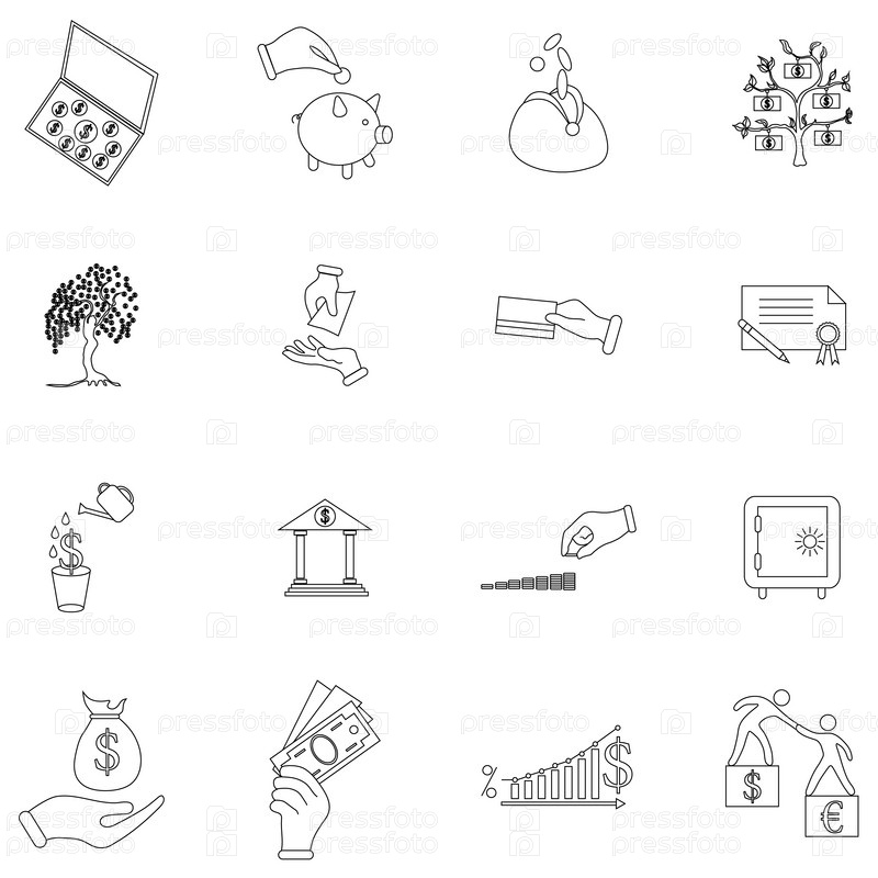 Набор значков денег, стиль тонкой линии