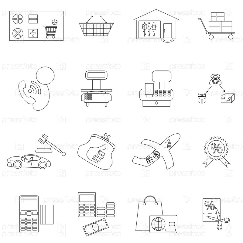 Набор икон покупок, стиль тонкой линии