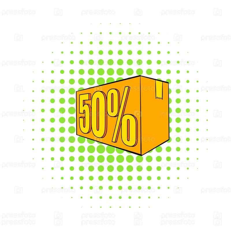 Половина цены, значок специального предложения, стиль комиксов