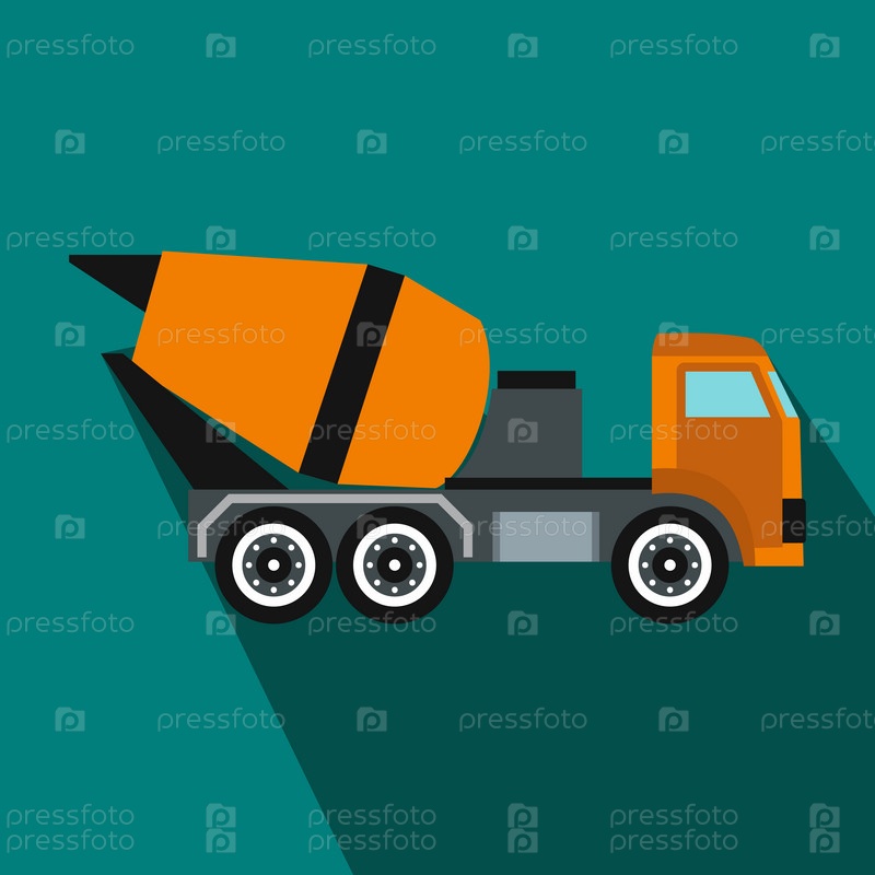 Строительный микшер для иконы бетона в плоском стиле на синем фоне