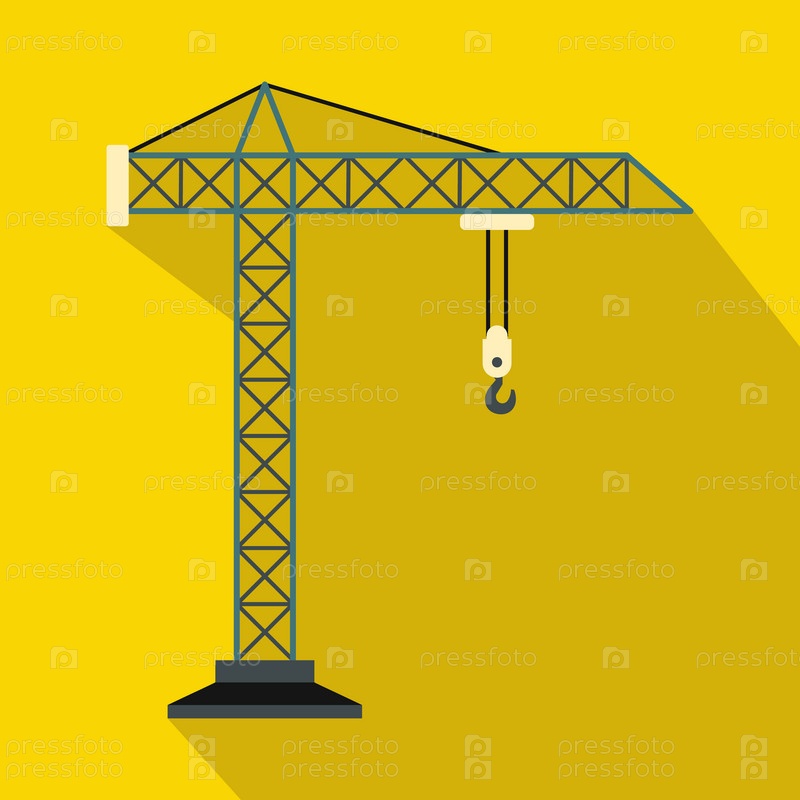 Икона строительного крана в плоском стиле на желтом фоне