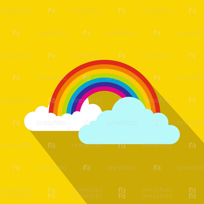 Икона радуги и облаков в плоском стиле на желтом фоне