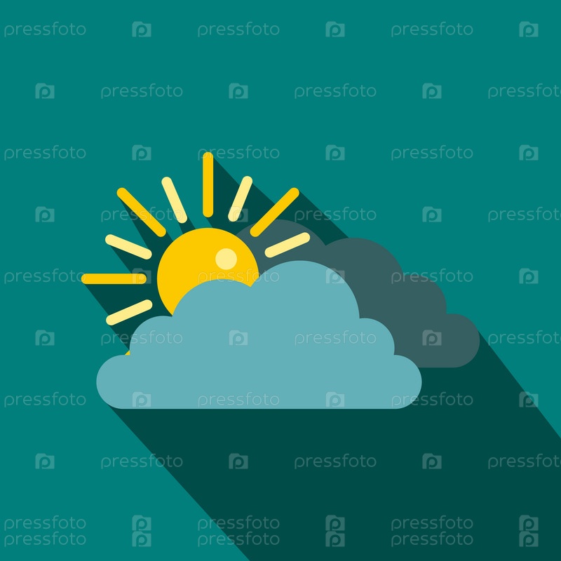 Икона солнца и облаков в плоском стиле на синем фоне
