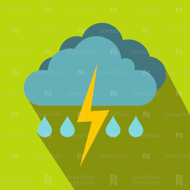 Облако с молнией и знаком дождя в плоском стиле на зеленом фоне