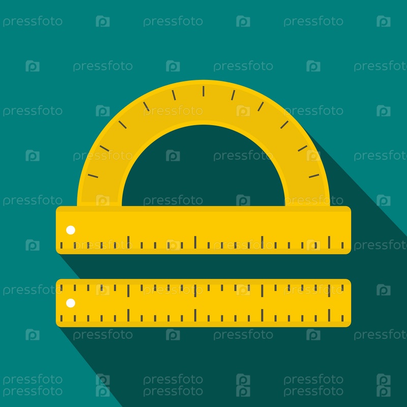 Икона линейки и протрактора в плоском стиле на синем фоне