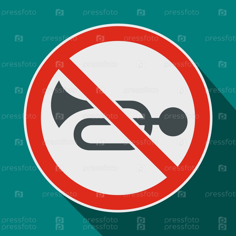 Нет иконы дорожного знака с рогатом в плоском стиле на синем фоне