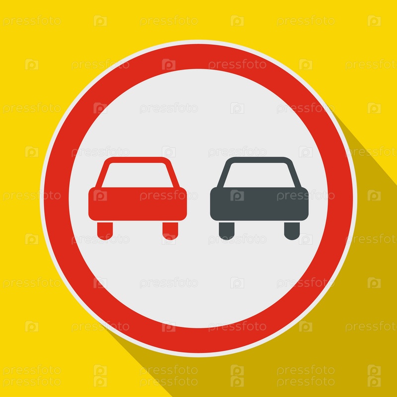 Икона знака дорожного движения без обгона в плоском стиле на желтом фоне