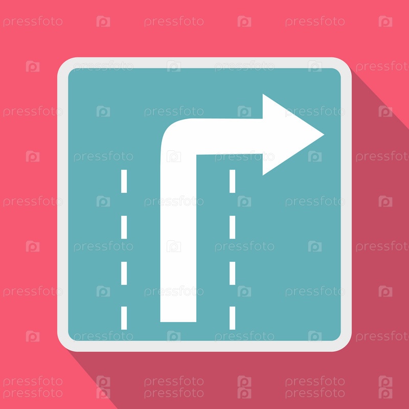 Поверните направо иконку дорожного знака в плоском стиле на розовом фоне