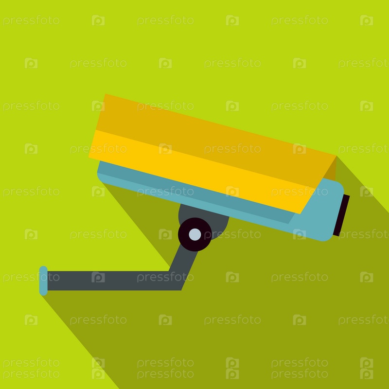 Икона камеры видеонаблюдения в плоском стиле на зеленом фоне