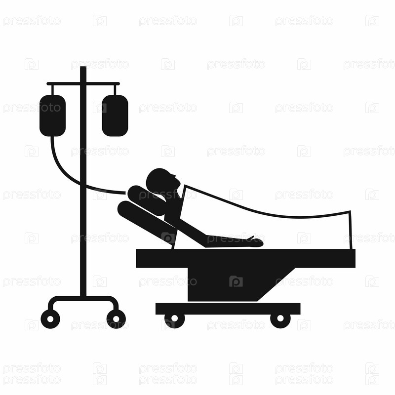 Пациент в постели на иконе капельницы, простой стиль