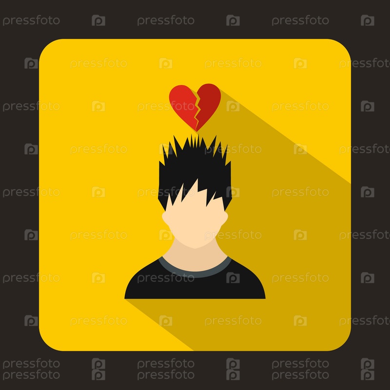 Человек с разбитым красным сердцем над головой икона в плоском стиле на желтом фоне