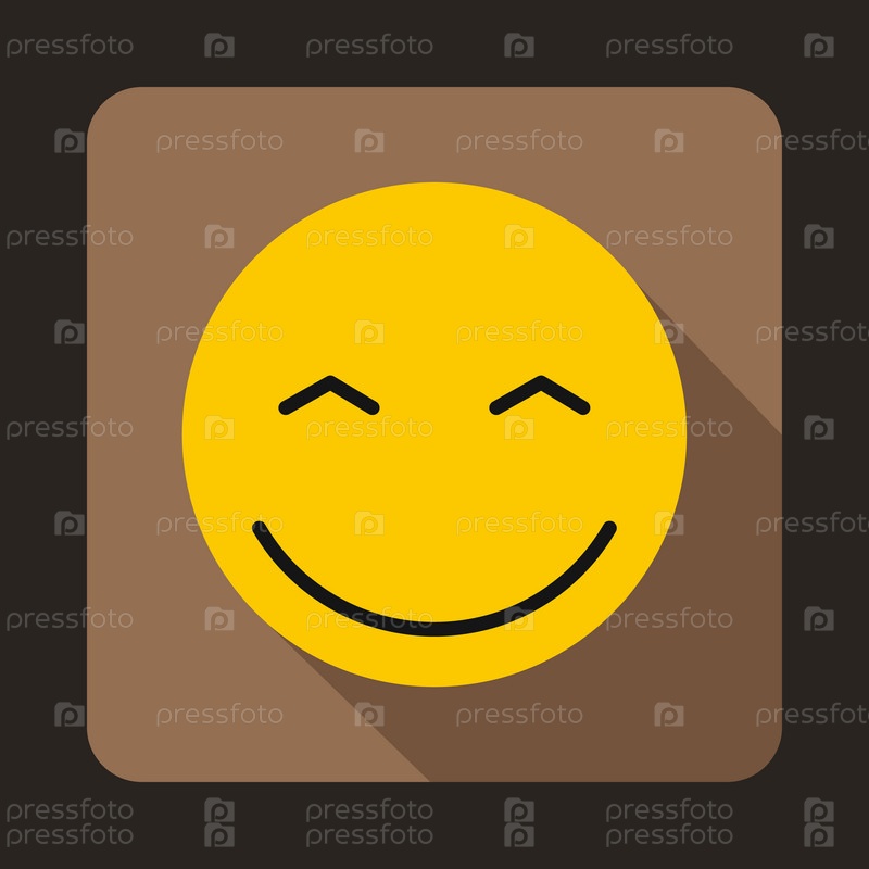 Улыбающийся смайлик с улыбчивыми глазами икона в плоском стиле на коричневом фоне
