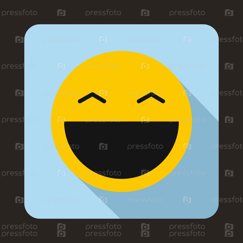 Смешный смайлик с открытым ртом и улыбающимися глазами - это икона в плоском стиле на светло-синем фоне