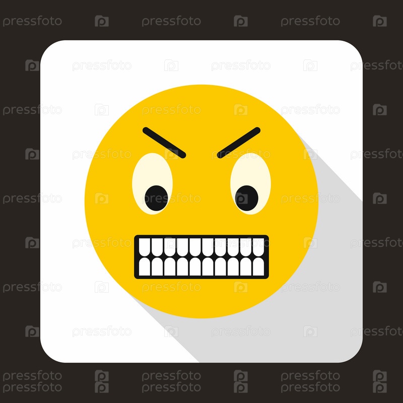 Икона сердитого смайлика в плоском стиле на белом фоне