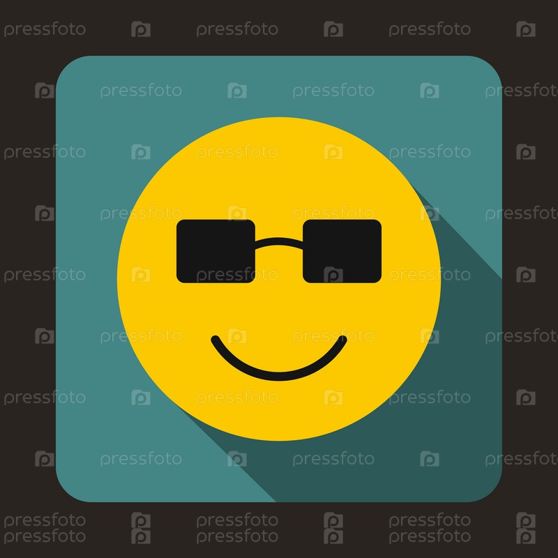 Улыбающийся смайлик в солнцезащитных очках икона в плоском стиле на синем фоне