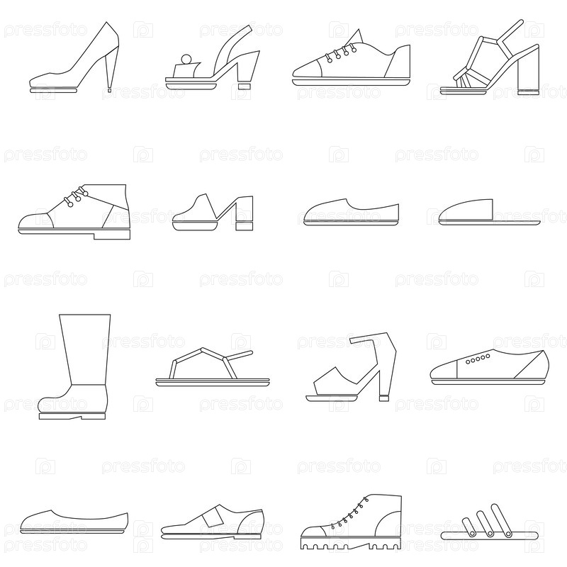 Набор икон обуви, стиль тонкой линии