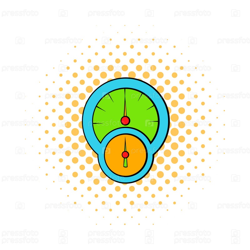 Икона спидометра и тахометра в стиле комиксов на белом фоне