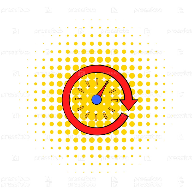 Красная икона спидометра в стиле комиксов на белом фоне