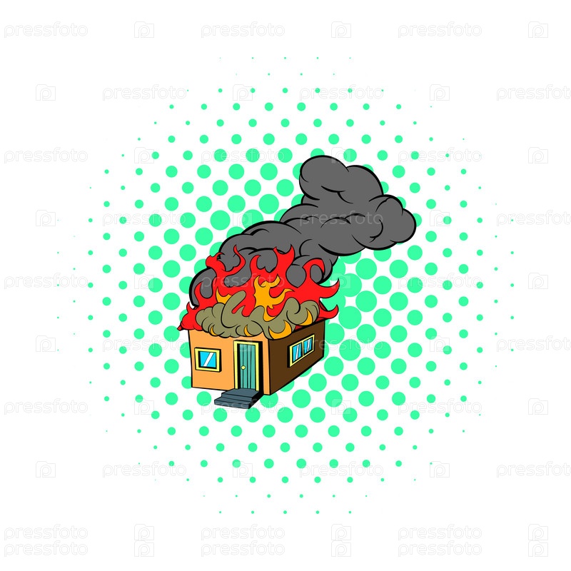 Икона горящего дома в стиле комиксов на белом фоне