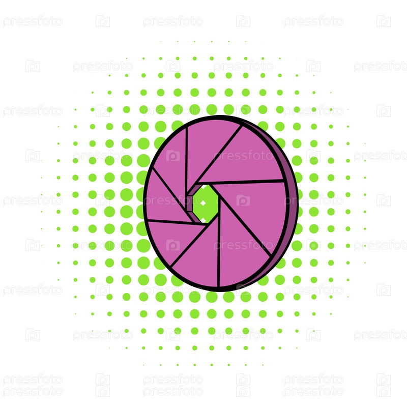 Икона диафрагмы камеры в стиле комиксов на белом фоне