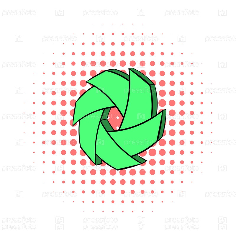 Икона зеленой диафрагмы камеры в стиле комиксов на белом фоне