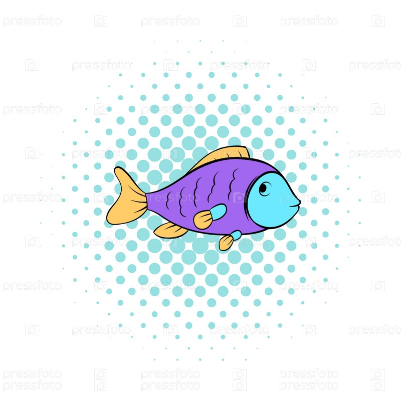 Красочная рыбная икона в стиле комиксов на белом фоне
