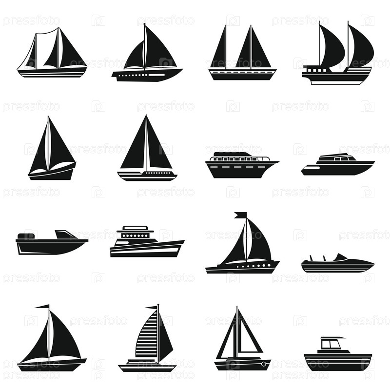 Набор значков лодки и судна