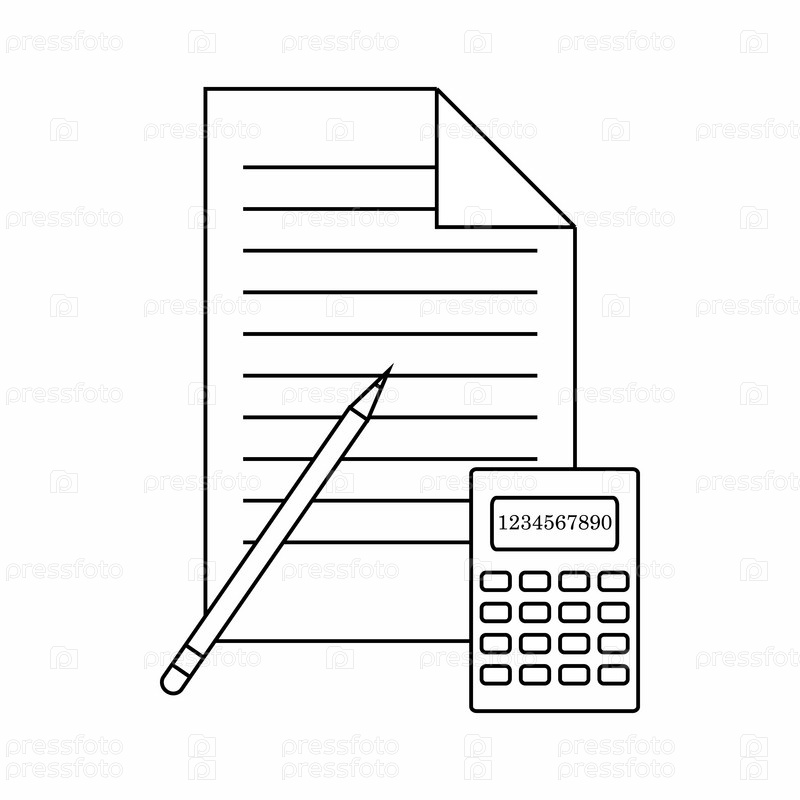Калькулятор, икона карандаша и бумаги, стиль тонкой линии