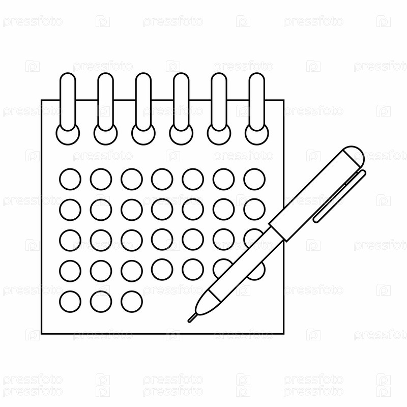 Иконка календаря и ручки, стиль тонкой линии