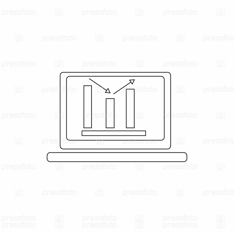 Ноутбук с иконой бизнес-графа, стиль тонкой линии