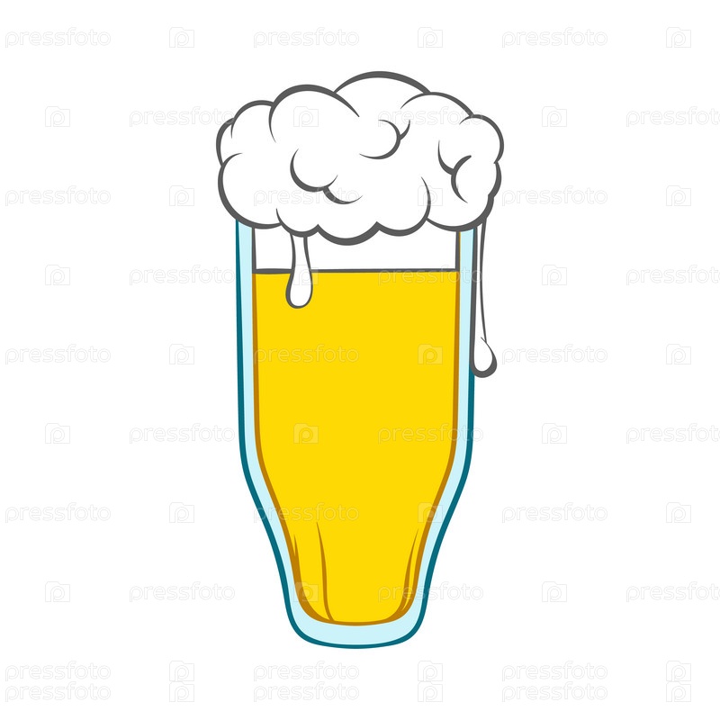 Стакан пивной иконы в стиле мультфильма на белом фоне