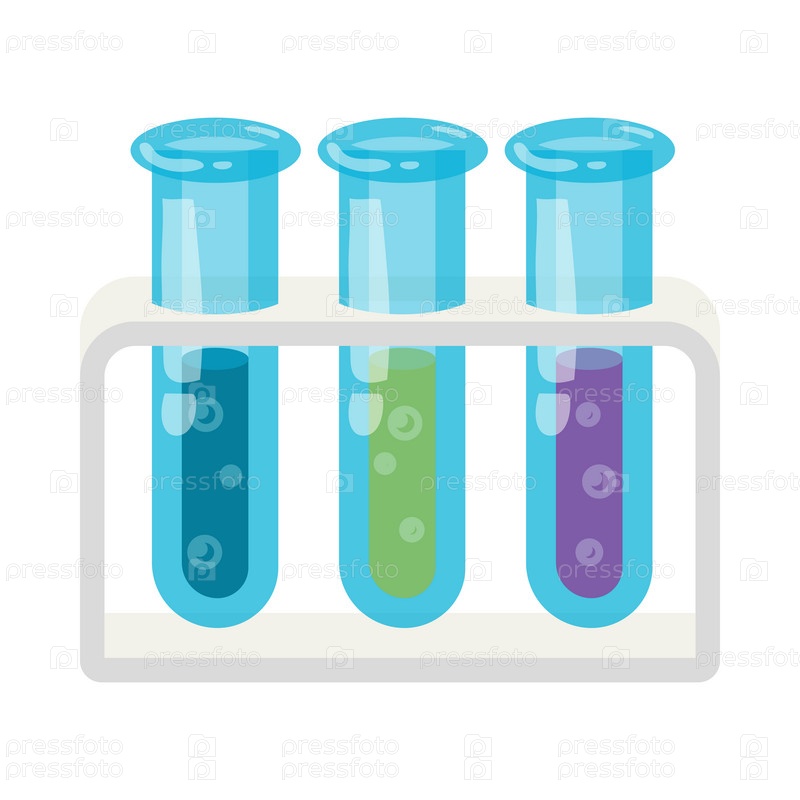 Три пробирки с цветными жидкостями икона в стиле мультфильма на белом фоне