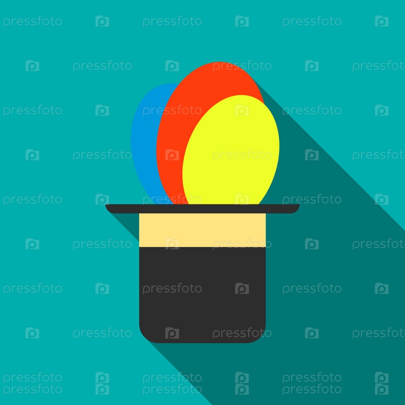 Баллоны, появляющиеся из иконы волшебной шляпы в плоском стиле на бирюзовом фоне