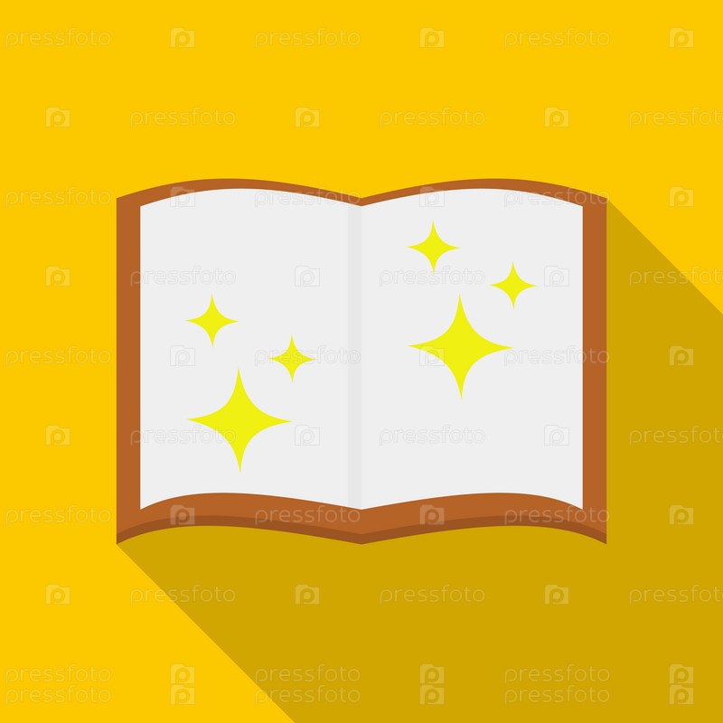 Икона волшебной книги в плоском стиле на желтом фоне
