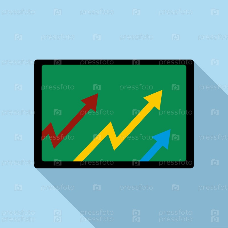 Компьютерный монитор с растущей иконой стрелок в плоском стиле на светло-синем фоне