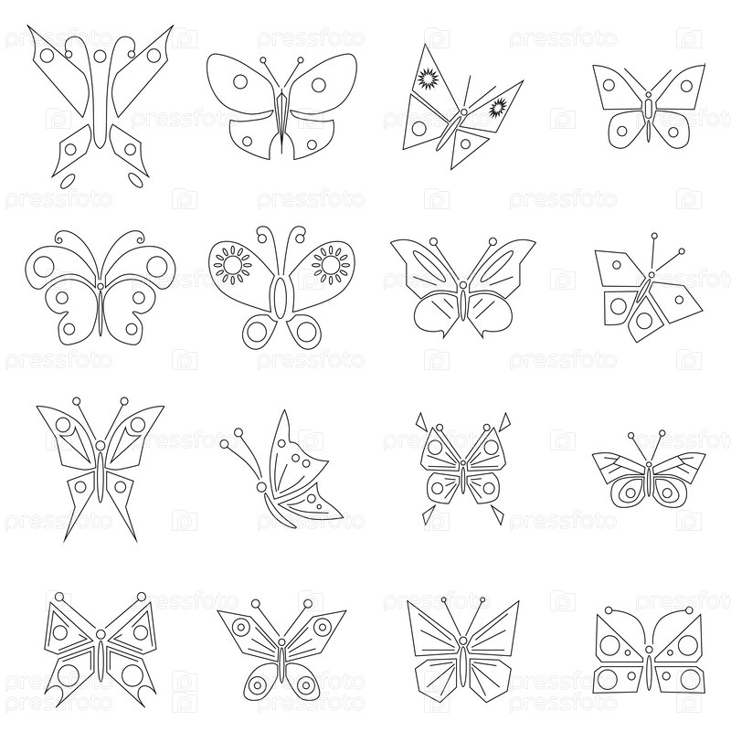 Набор значков бабочек, стиль контуры