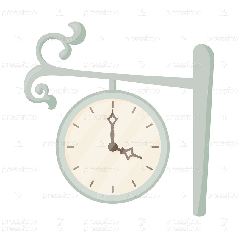 Икона станционного часа в стиле мультфильма на белом фоне