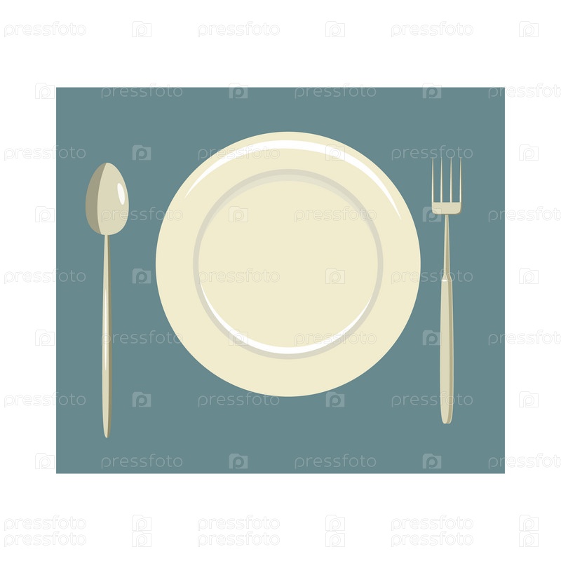 Установка места с пустой иконой вилки и ножа в стиле мультфильма на белом фоне