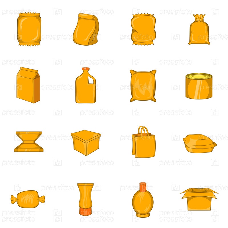 Набор икон упаковки, в стиле мультфильма